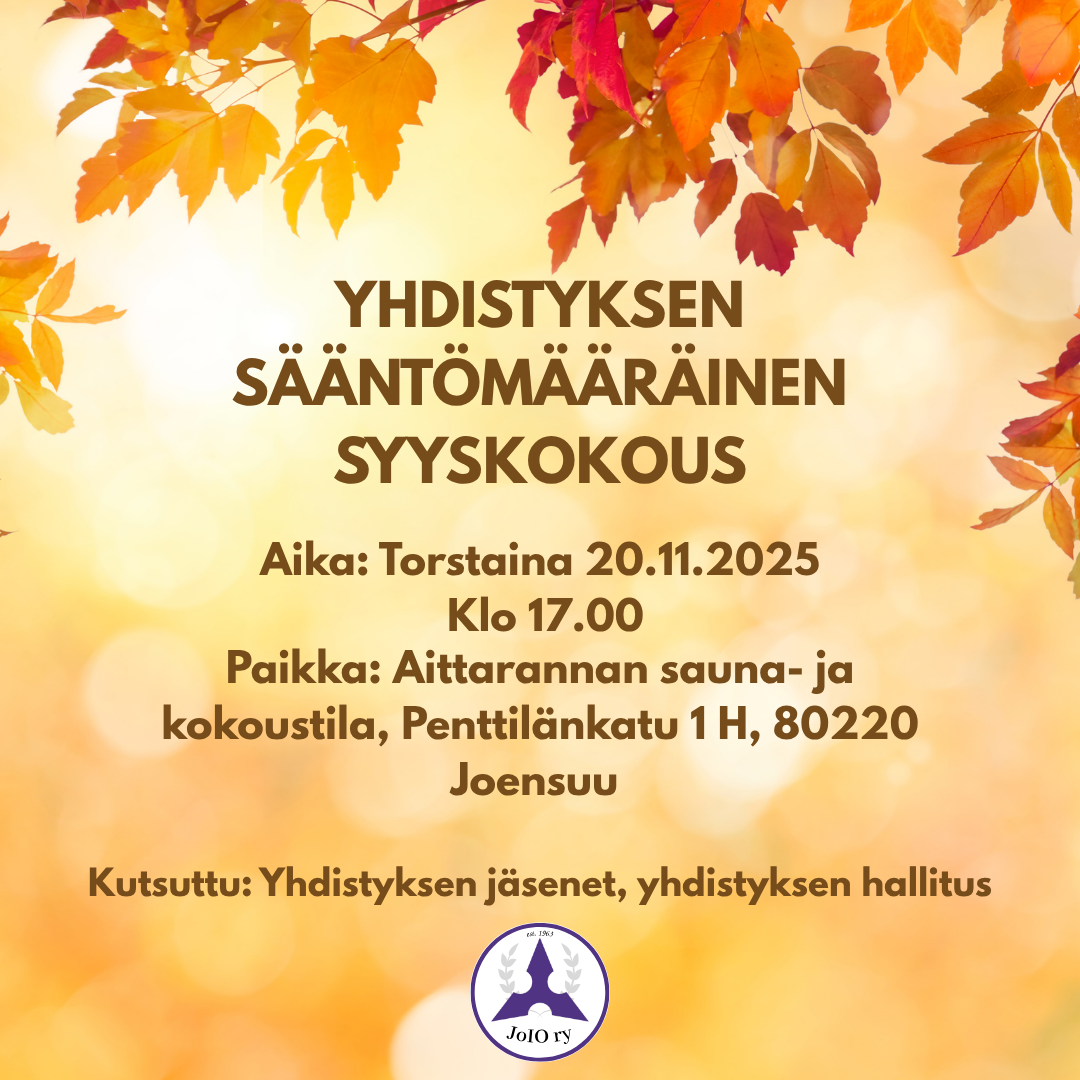 JoIO lomailee! Palaamme takaisin hommiin taas syksyllä. Syksyllä tulossa mm. perinteiset Tursajaiset sekä juhlistamme 60-vuotiasta JoIO ry:tä vuosijuhlilla 18.11. Kansitusten viimeinen tilauspäivä on…